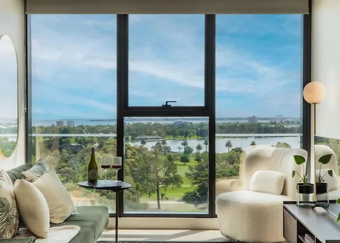 Niché dans le quartier "St Kilda Road" à Ville de Melbourne, la propriété The Elegant Green Suite - City & Albert Park Views Ville de Ville de Melbourne propose un hébergement à 2 km d'un lieu d'intérêt culturel tel que le site historique de la maison de Cook. La résidence dispose également d'une terrasse surplombant le lac.